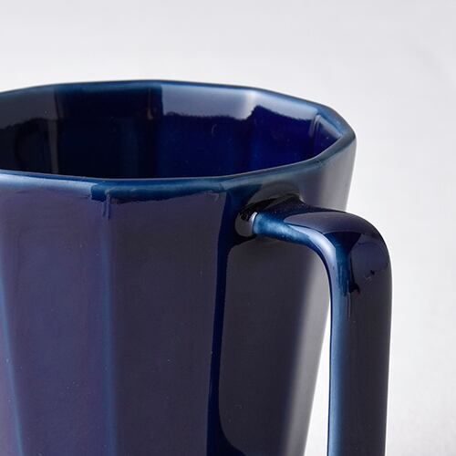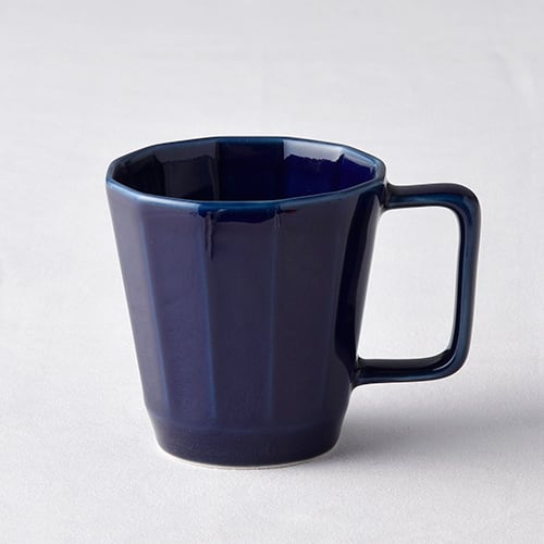 エッジの際立つデザインながら飲み口は優しい口当たりのマグカップです。